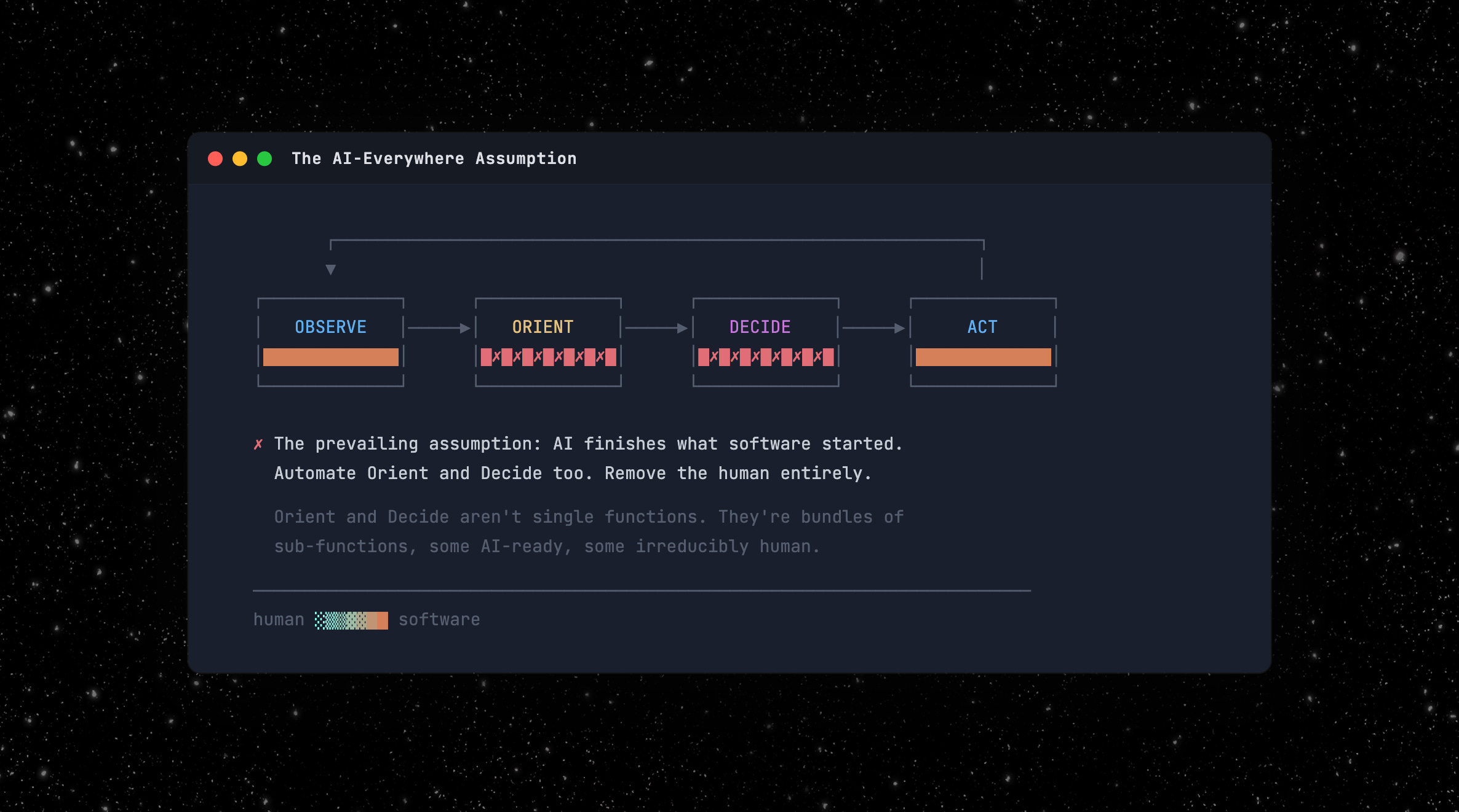 For some roles, that’s right. But for most of the interesting ones, it’s a fundamental misunderstanding of what the human was actually doing in Orient and Decide.